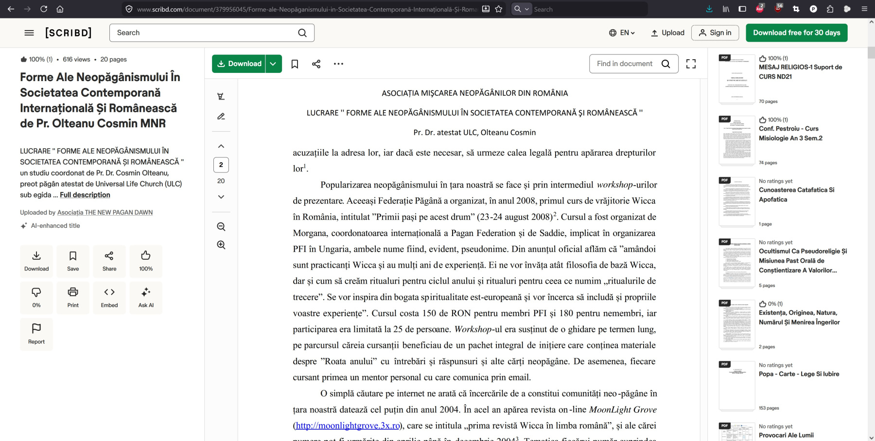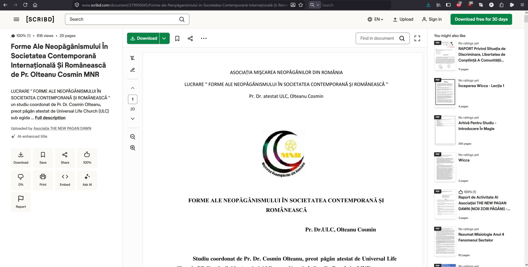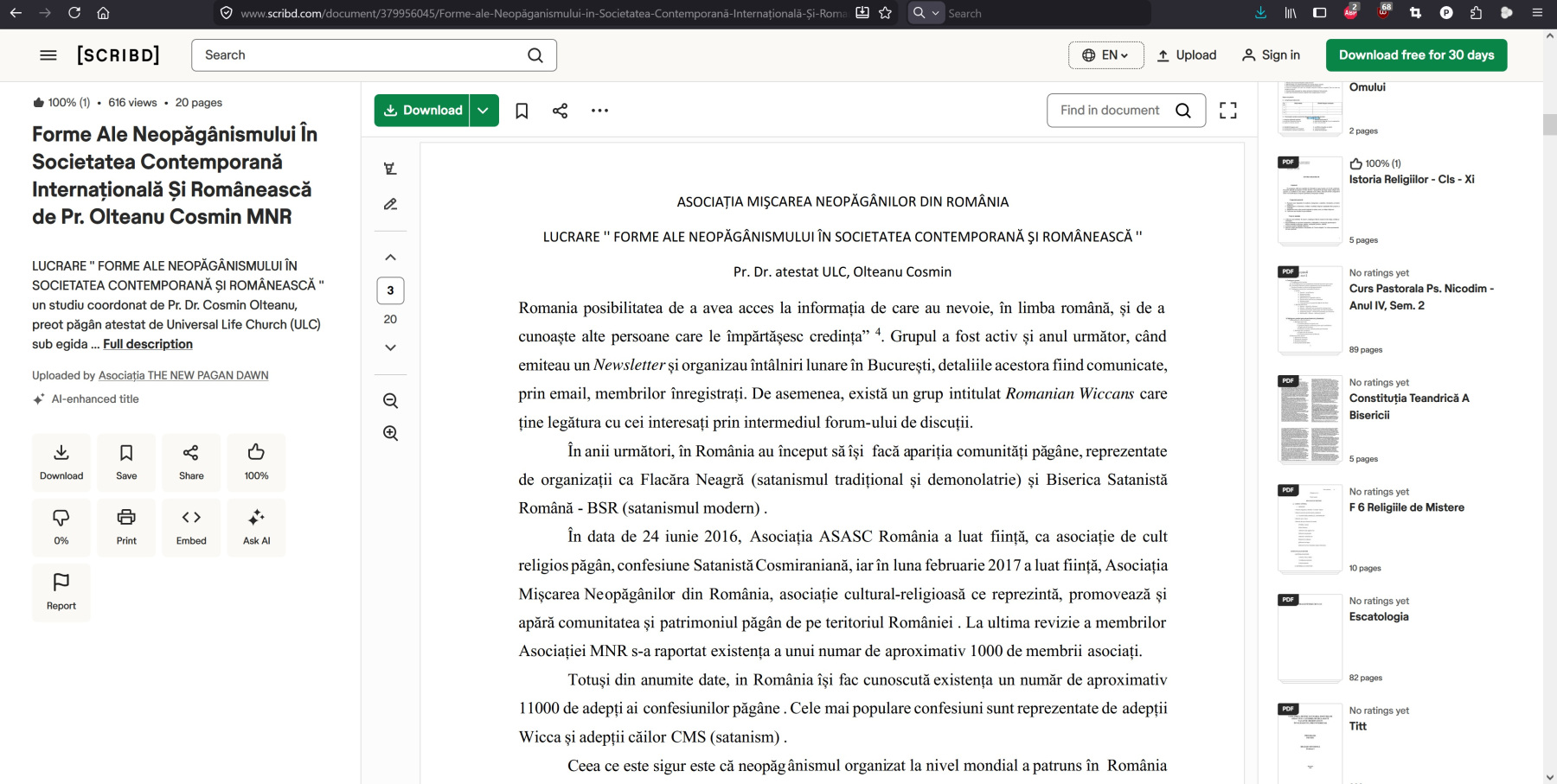 - Cosmin Olteanu (actual Emrys LeFay), New Pagan Dawn, copiatul, impostura, mitomania și procesomania (partea a 4-a) - March 23, 2026