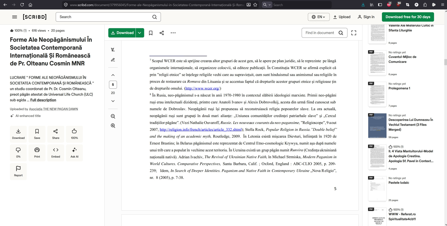 - includerea unor estimări numerice privind adepții neopăgânismului;
